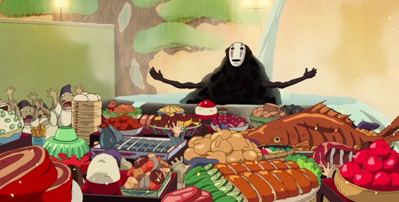 Kaonashi adalah wujud dari sebuah keserakahan. ia mengamati bahwa para pekerja sangat menyukai uang sehingga ia memberikan mereka uang dan sebagai gantinya mereka harus melayani dia. Para pekerja akan memberikannya pujian dan menyiapkannya hidangan yang sangat lezat.