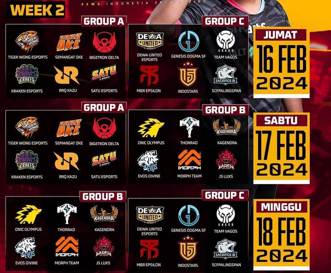 GAMEFINITY.ID, Jakarta – Week 2 FFWS ID Spring 2024, dimulai dari 16-18 Februari 2024, dengan adanya tim yang perlu diwaspadai pada minggu ke-2 ini. Kompetisi minggu kedua ini tentu akan semakin panas dengan melibatkan 18 tim yang akan bersaing untuk ke babak selanjutnya dengan saling menantang dengan kemampuan mekanik mereka.